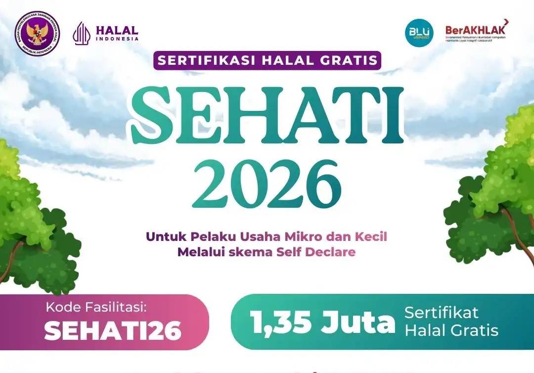 Bontang. Badan Penyelenggara Jaminan Produk Halal (BPJPH) membuka sebanyak 1,35 juta kuota sertifikat halal gratis bagi pelaku Usaha Mikro dan Kecil (UMK) melalui Program Sertifikasi Halal Gratis (SEHATI) tahun 2026.