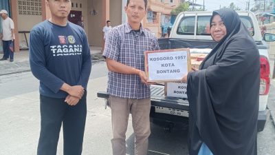 Bantuan bahan pangan pokok berupa beras, mie instant dan air mineral, diserahkan langsung oleh perwakilan pengurus cabang JMSI Kota Bontang di posko bantuan setempat.