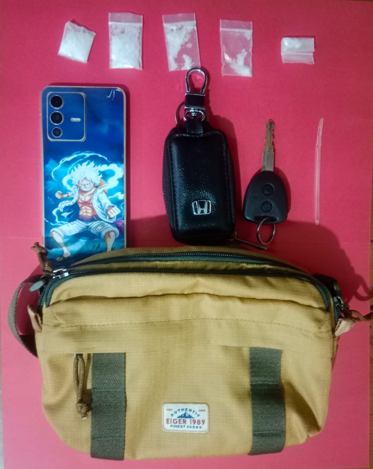 Dari hasil penggeledahan lanjutan, polisi kembali mengamankan barang bukti berupa satu tas kecil berisi sabu, satu dompet berisi sabu dan alat isap, satu unit telepon genggam, serta satu unit mobil. Total sabu yang diamankan memiliki berat bruto 4,85 gram.