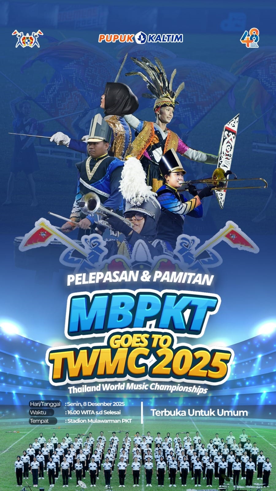 Bontang. Marching Band Pupuk Kaltim (MBPKT) akan menggelar konser Pelepasan & Pamitan sebagai bagian dari persiapan keberangkatan menuju ajang bergengsi Thailand World Music Championships (TWMC) 2025. Acara ini terbuka untuk umum dan menjadi momen penting bagi masyarakat Bontang untuk memberikan dukungan secara langsung kepada satu-satunya tim yang mewakili Indonesia dalam kompetisi internasional tersebut.