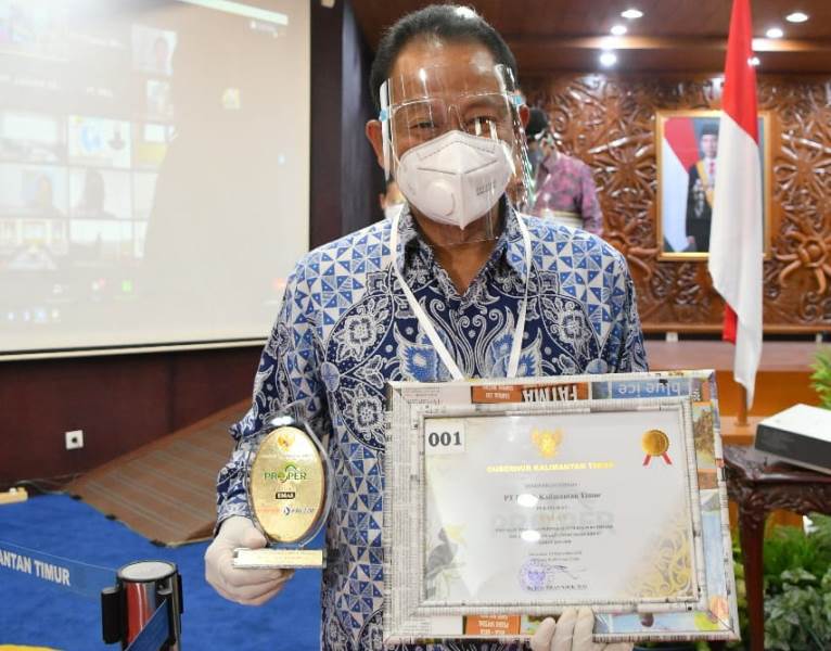 Bontang. PT Pupuk Kalimantan Timur (Pupuk Kaltim) kembali meraih penghargaan Proper Daerah peringkat Emas untuk ke-5 kalinya dari Pemerintah Provinsi Kaltim, atas komitmen Perusahaan yang senantiasa peduli terhadap pelestarian lingkungan, serta menjalankan aktivitas bisnis yang beretika dan bertanggungjawab terhadap masyarakat. Penghargaan diterima Direktur Keuangan dan Umum Pupuk Kaltim Qomaruzzaman, dari Gubernur Kaltim Isran Noor, pada peringatan Hari Lingkungan Hidup Sedunia 2020 di Samarinda, Senin (28/9/2020) pagi.