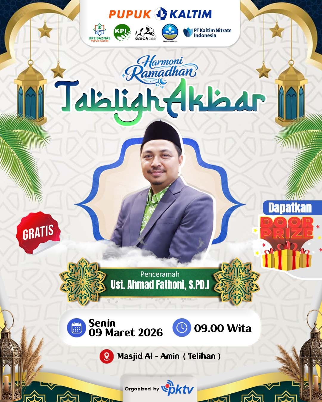 Kesuksesan rangkaian “Harmoni Ramadhan” tahun ini merupakan hasil sinergi antara Pupuk Kaltim dengan mitra strategis, yaitu UPZ Baznas Pupuk Kaltim, PT KPI, PT Black Bear dan PT Kaltim Nitrate Indonesia (KNI). Mari hadiri dan ramaikan puncak rangkaian Tabligh Akbar ini sebagai bekal rohani terbaik kita menuju bulan penuh keberkahan.