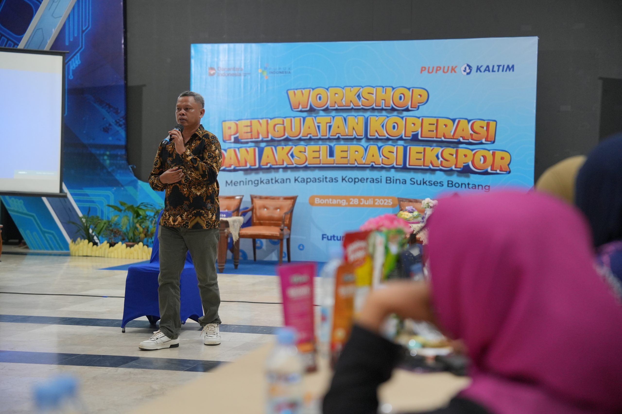 Bontang. Wadahi UMKM lokal agar naik kelas dan berorientasi ekspor, PT Pupuk Kalimantan Timur (Pupuk Kaltim) bekali anggota Koperasi Bina Sukses Bontang (BSB) berbagai kiat hingga strategi pengembangan koperasi secara profesional dan berdaya saing global. Kegiatan bertajuk “Workshop Penguatan Koperasi dan Akselerasi Ekspor” ini sekaligus upaya mendorong kolaborasi nyata koperasi BSB sebagai binaan Pupuk Kaltim, dengan koperasi yang telah memiliki pengalaman ekspor secara produktif.