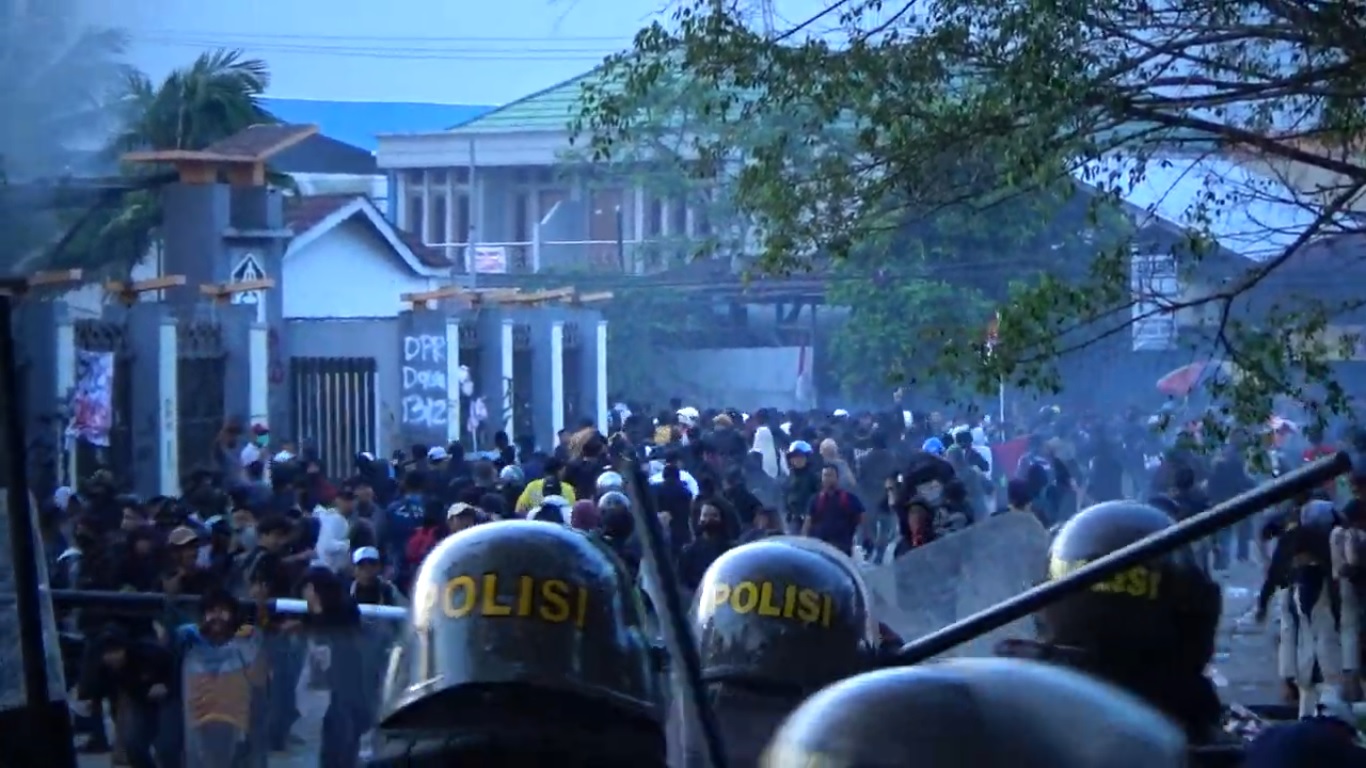 Samarinda. Aksi unjuk rasa yang digelar Aliansi Mahakam di depan kantor DPRD Kalimantan Timur, Jalan Teuku Umar, Samarinda, Senin (2/9/2025), berakhir ricuh. Massa melakukan perusakan fasilitas umum hingga melempar bom molotov ke dalam gedung dewan. Aparat kepolisian terpaksa membubarkan massa dengan tembakan gas air mata dan water canon.