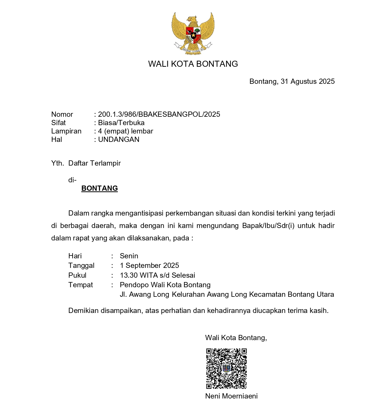 Acara yang digelar di Pendopo Wali Kota, Jalan Awang Long, Bontang Utara, mulai pukul 13.30 WITA ini, bukan rapat biasa. Lebih dari 70 tokoh penting diundang, mulai dari Wakil Wali Kota, Ketua DPRD, pimpinan TNI-Polri, Kepala Kejari, BNN, Imigrasi, Bea Cukai, hingga camat, lurah, dan seluruh ketua ormas serta paguyuban yang ada di Kota Bontang.